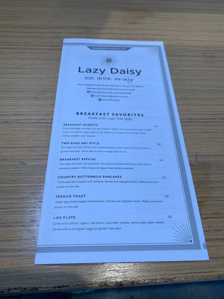 Welcome to Lazy Daisy, a delightful addition to Beverly Hills' culinary scene, specializing in New American breakfast and brunch fare! Conveniently located at 155 S Robertson Blvd, this women-owned café embodies a warm, welcoming atmosphere perfect for all occasions.